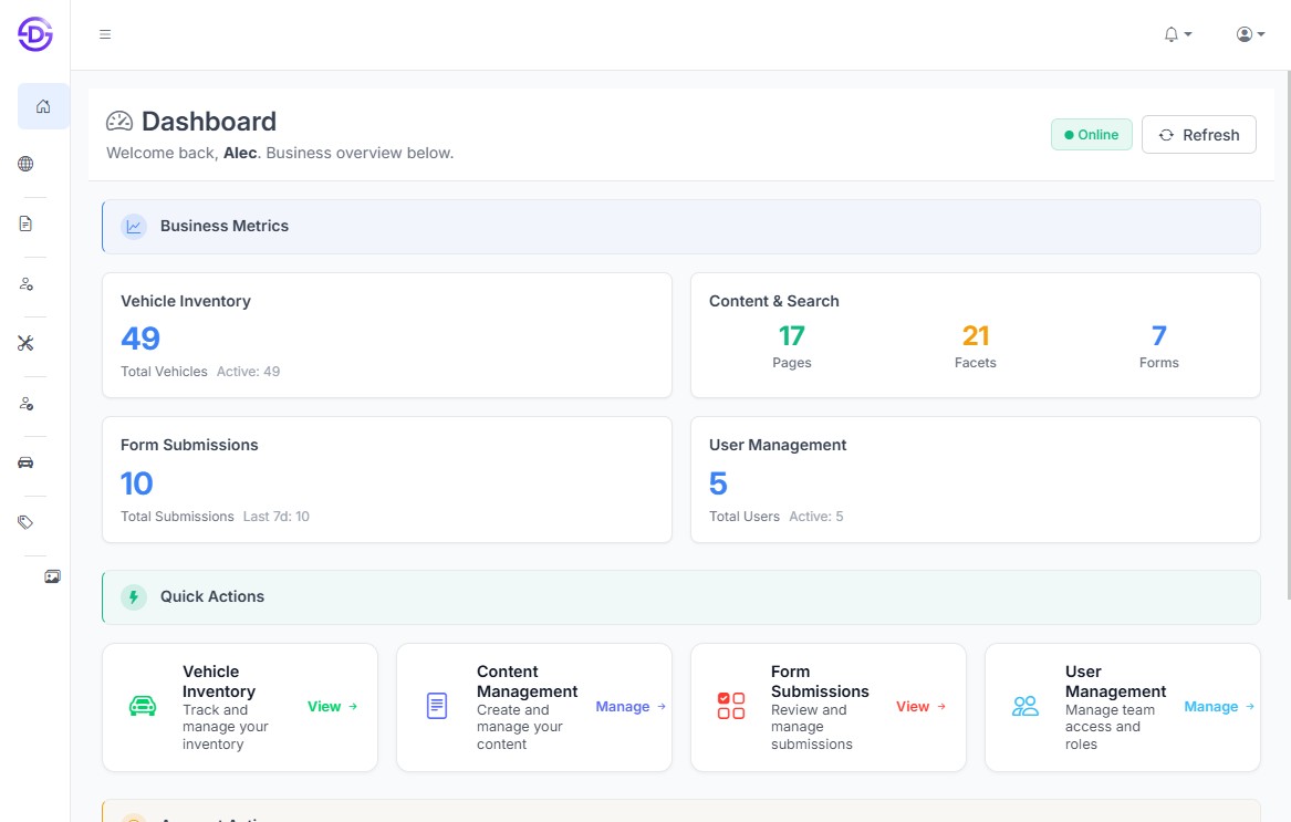 Dealerspry helps dealerships scale their online presence with a single, performance-built platform. Manage your website, SEO, and inventory in one place—with seamless integrations and powerful automation that drive measurable growth.